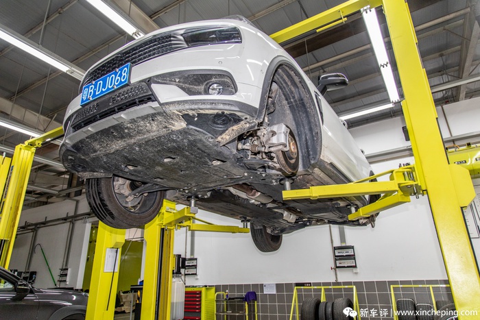 这究竟是怎么做到的呢?我们也是对此非常好奇,所以在我的同事去越野之后,我就打着检查底盘的名义把领克01给升起来“检查检查”。