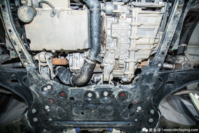 刚把领克01升起来的时候,我就知道拍摄不轻松了,因为要拆护板,而领克01的底盘护板很多很大,真要全拆的话要费一番功夫了。但是,反过来说,这样的防护措施其实对消费者是非常友好的,我就挑最简单的来说,上次我的同事开这台车去越野路段跑了那么久,但就这么一看看底盘也没什么事,可见这护板是真真切切起到了防护作用,这也会让消费者在日常用车过程中更加放心。