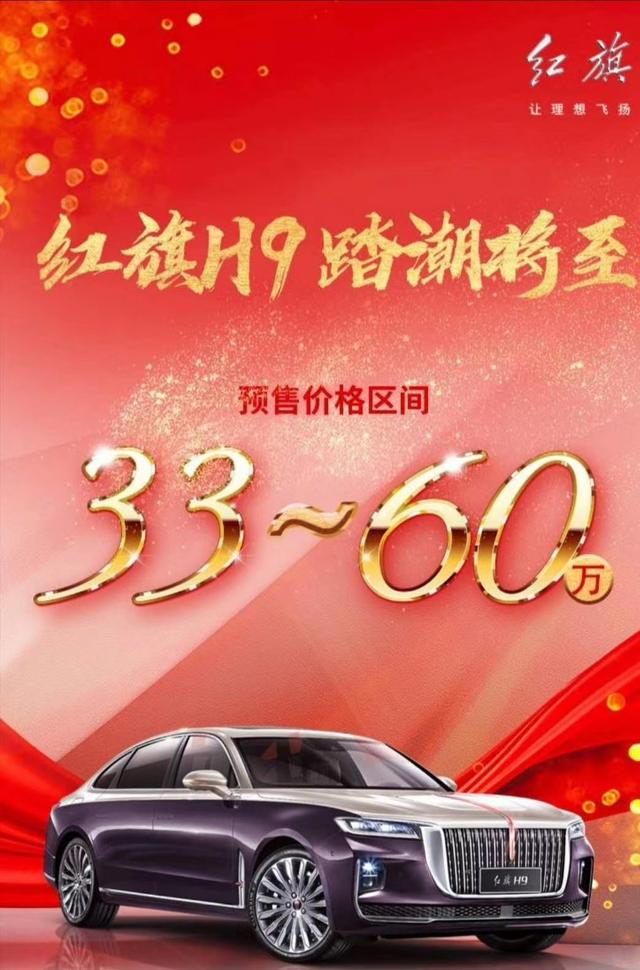 前两天,作为国产高端豪华车代表的红旗终于也已经是公布了旗下顶级旗舰轿车红旗H9 (配置|询价)的预售价格,此次红旗一共为消费者提供了5款H9车型,预售区间为33.00-60.00万元,新车将会在8月份正式上市。