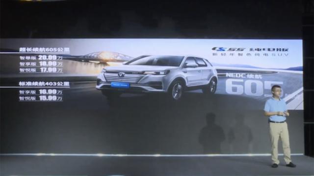 2020年7月15日晚,长安CS55 纯电版正式上市,新车定位于紧凑型纯电SUV,NEDC续航里程为605公里以及403公里。新车共推出两种版本5款车型,补贴后售价区间为15.99万-20.09万元。购车可享三种金融购车方案以及多项硬核免费服务此外,当前爱车置换CS55纯电版享1万补贴,首任CS55纯电版车主换任意长安新能源汽车享2万置换补贴。