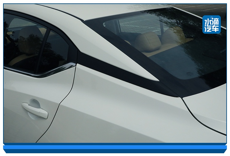 在侧面全新轩逸还有一大亮点设计,隐藏式C柱设计在轿车上的应用并不多,从实际效果上看真的为车侧带来了不错的层次感,提升车身侧面的设计感。车身线条虽说是中规中矩秉承了日产车的传统,但是这种弧面设计还是给人一种较为强烈的运动感。