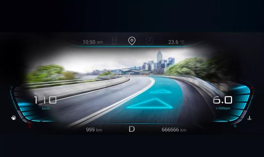 以高清摄像头和GPS定位功能联合实现的AR实景导航功能,能够将车前方的路况投射到液晶仪表盘上,在开启导航功能后,车前的实时画面会拥有AR图标指引,体验感非常科幻。