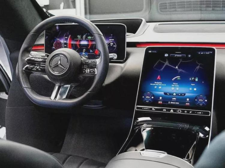 内饰方面,内饰采用了很有科技感的风格打造,新车采用了全新造型的三幅式的平底方向盘的设计,中控屏采用了悬浮式的设计,而且全部取消了物理按键,仪表直接采用了裸露式的设计,有一种很自然的感觉。全新奔驰S级的中控台的上沿采用了环抱式的车内氛围灯的设计,车内的氛围感非常强。新车仪表的后方是一个全彩的HUD抬头显示,它集成了很多的功能。值得一提的是,新车将推出第二代MBUX信息娱乐系统。