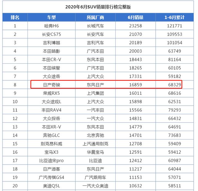 在如此价格优势下,6月份奇骏卖出了16859台,仅次于皓影和CR-V (配置|询价)之后,作为一个6年没有换代的老车型而言表现是相当出色。如果你资金有限又想买合资SUV我觉得日产奇骏是一个不错的选择,性价比高空间大,自吸发动机配CVT省油耐用,虽然外观内饰比较过时,但是不影响整体使用。