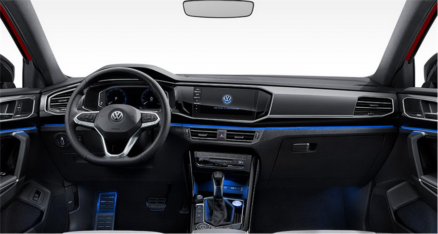 视线来到车内,探岳X的内饰设计依旧是我们非常熟悉的大众风,但其针对诸多设计细节进行了调整,使内饰更具有运动风格。如车内采用了大量仿碳纤维材质的装饰板、拼色座椅等。