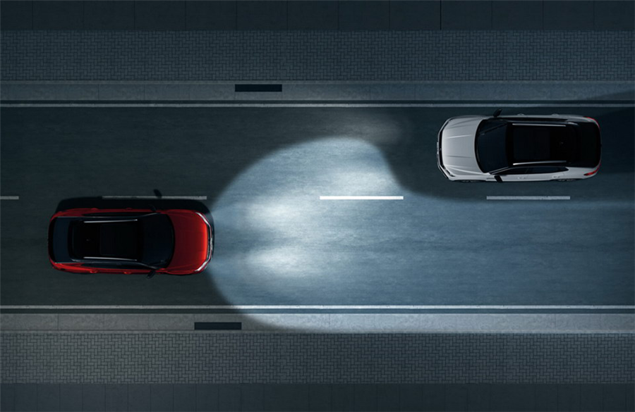 该系统通过多功能摄像头探测车辆及道路的灯光,结合车速、转向角度等信息,可提供最佳的灯光分布,从而有效避免对向来车产生的眩目情况,可提升行车安全。