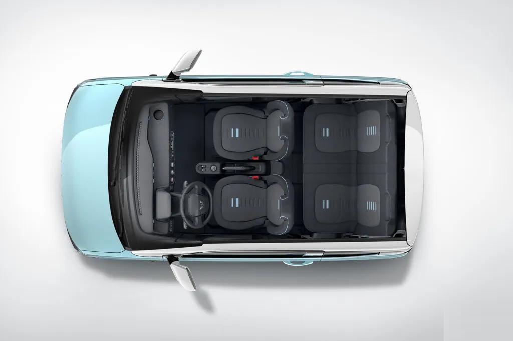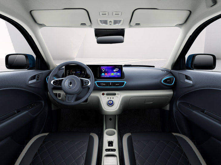 外观方面,新车造型非常小巧可爱,前脸采用了较多的直线条进行勾勒,配合着贯穿式进气口、窄条幅式格栅以及趋于矩形的大灯组。车身侧面采用了双腰线设计,平行的线条配合前后凸起的轮眉造型。尾部同样使用了较多的直线条设计,层次感突出。车身尺寸方面,新车的长宽高分别为2917×1493×1621mm,轴距为1940mm。