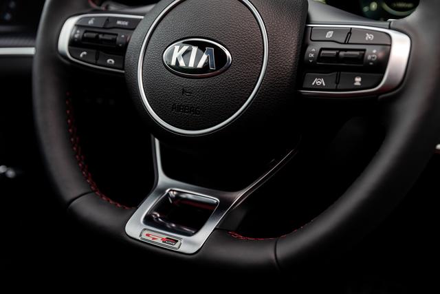 多功能方向盘采用平底设计,运动感十足,底部的GT-Line标识也在向你证明:凯酷的运动,绝不是说说而已。