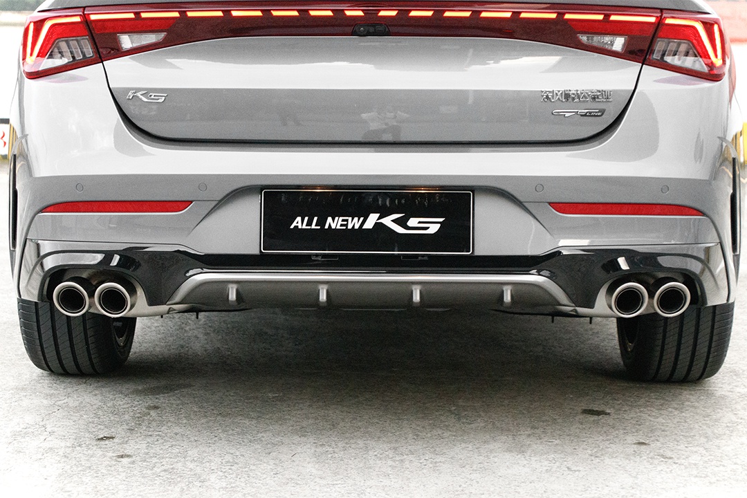 对了,实拍车型是GT-LINE版本,所以可以看到有不少的亮黑色运动风格装饰件。与此同时,还配备有“唬人”的双边共四出圆筒排气,中间还有一块银色的空气扩散器造型护板。