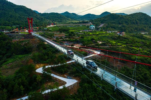 擎天玻璃桥,正是横跨湟川三峡陡崖峭壁的一座全透明玻璃的景观桥梁,长度超过520米,站在桥上尽览粤北最大瀑布群。兼具两岸行人通行、游览、蹦极、溜索、T台等多项综合功能,拥有更大的跨度、更宽的桥面、安全稳定的桥梁结构以及超凡脱俗的外观设计等。更重要的是,它所处的地势险峻,造桥的技术难度可想而知,彰显了中国的制造实力。