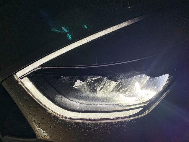 这里值得一提的是,新车的前大灯内由四颗颗粒状灯源设计,并且LED日间行车灯与车身侧面的镀铬装饰条相连,点亮效果极佳。