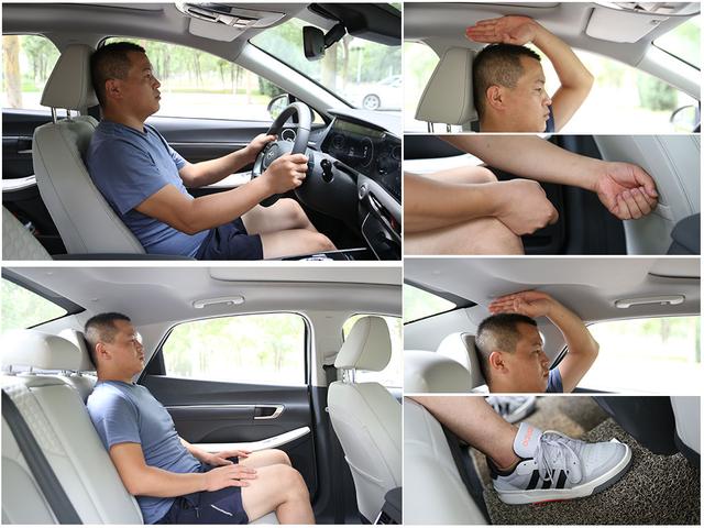 我身高170cm,调节坐姿,前排头部空间5指,不过此时的座椅高度还可以向下调,空间还可以拓展;来到后排,腿部距离3拳以上,头部距离4指,其空间的整体表现真心还不错。