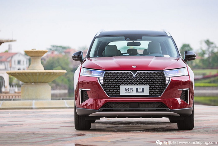 在外形方面,个人认为启辰星是相当符合国人审美的,尽管定位紧凑型SUV,但外形非常“显大”,尤其车头有着足够的气场。而且这个官方称为“混元美学”设计的外形,有着非常高的原创度,多边形进气中网的内部还有着细小的镀铬点缀,官方称之为V-Galaxy星空前脸,离远了看,的确突出了中网上方的“V”型元素。两侧的开眼角大灯造型规整,在靠中网内部的角落还有个独立的日行灯,点亮的效果还挺有辨识度的。