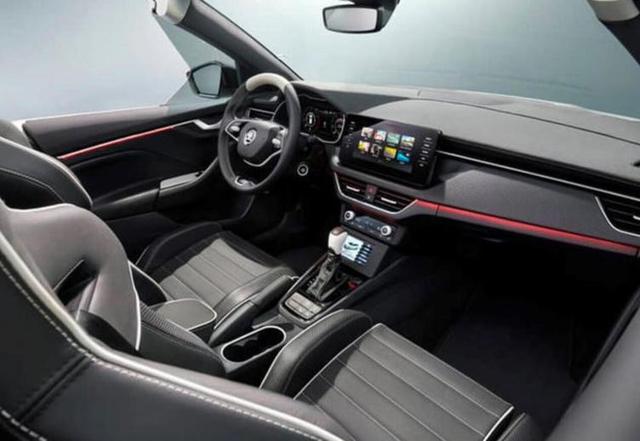 外观部分,斯柯达家族式的进气格栅得以沿用,三角形的头灯造型十分锋利,与进气格栅相连,发动机盖上4条硬朗的线条为整车增添了不少力量感。黑色的前唇也为整车增添了不少运动气息。车身侧面线条比较短促,车门尺寸有一些小,整体看上去不是很协调。尾部配有黑色尾翼,下方配有扩散器,尾灯造型十分凌厉。