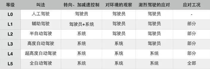 美国SAE对自动驾驶技术的分级