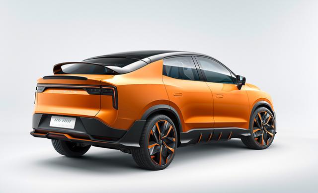 外观方面,新车整体运用黑色与橘黄色相结合的色彩搭配,前脸采用了蛙嘴式设计,不规则造型的前大灯组搭配封闭式进气格栅,动感且富有张力。车身侧面线条流畅犀利,搭配多辐式双色轮圈,营造了极强的运动氛围。车尾部分,尾灯组采用贯穿式设计,点亮后辨识度高,整体造型层次感分明。