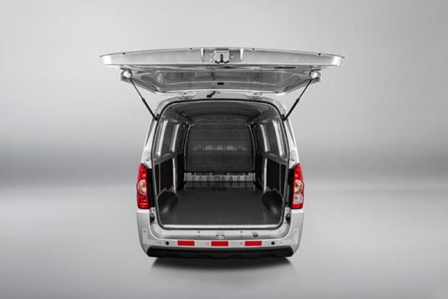 外观方面,新车前脸采用了与燃油车型不同的设计语言,前格栅采用点阵花纹,保证通风散热功能的同时,使其拥有了很强的辨识度。该车型为加长厢式货运版本,因此车身后半部采用了盲窗设计,且侧面与尾部应要求都采用了红白相间的反光条。尺寸方面,新车长宽高分别为4490/1610/1900mm,轴距为3050mm。