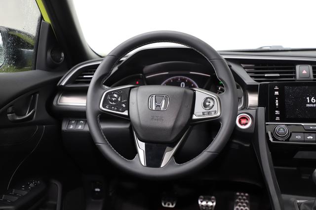 值得一提的是,以我们试驾车型为例,是一款手动挡车型。大部分人根据之前的惯性思维会判断,手动挡车型一定是低配车型。但在思域两厢版身上,手动挡既是高配,与自动挡高配车型相比配置一点不差。