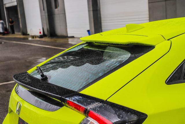 虽然还有许多没有介绍,但我不想再按传统顺序来介绍这款车,先来看看车尾。对于车尾,我相信许多人最喜欢的角度。如果让我说整车设计最喜欢的地方,我毫不犹豫的选择车尾,夸张的后包围,中置双出排气还有那两个尾翼,要比三厢版的战斗气息增强了许多。虽然与Type R的尾翼相比尺寸小了点,但我觉得没关系,这都是小事,大家都懂。
