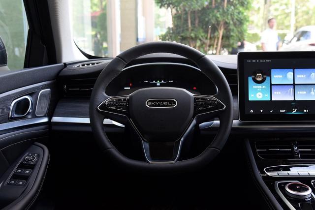 具体来看,12.3英寸全液晶仪表盘和12.8英寸全液晶触控大屏都是新车内部的亮点所在。此外,三辐式多功能方向盘、旋钮式换挡机构为车辆增加几分科技质感。