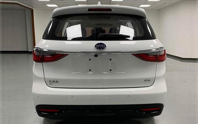 外观部分, 比亚迪e6 (配置|询价)采用了全新的设计语言,车头处采用了封闭式前进气格栅,并且使用银色装饰条将两侧的大灯相连,另外前格栅内部还加入了蜂窝状的装饰进行点缀。车身侧面采用了非常平直的设计,可以为后排乘客提供出色的头部空间。车辆尾部造型则与宋MAX基本相同。