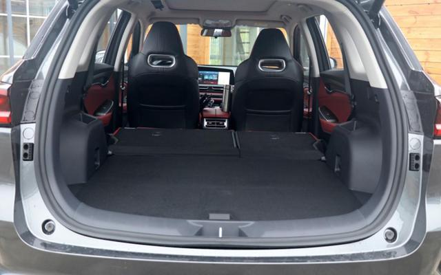 来到车内,红黑双色的内饰配色非常富有激情,带来了一定的视觉冲击感。全液晶仪表与中控显示屏组成的一体式大屏,营造出科技质感,其中中控屏采用基于腾讯生态打造的梧桐智能车联系统。配置上则配备了多种驾驶模式切换、陡坡缓降、可开启全景天窗、7英寸液晶仪表、12.3英寸中控屏(GPS导航、手机互联、语音控制及车联网)等功能,总体来说配置很高。空间也是一如既往的大,后排地板几乎纯平,后备厢也是纯平,整体相当不错了。