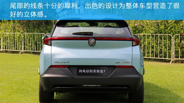 别克微蓝7有着标准SUV车型的造型,悬浮式车顶、车顶行李架都出现在了微蓝7上,车身四周还加入了许多黑色的防刮材质,有着浓浓的跨界风格。车尾贯穿式LED尾灯与头灯相呼应,使新车的整体感更强。