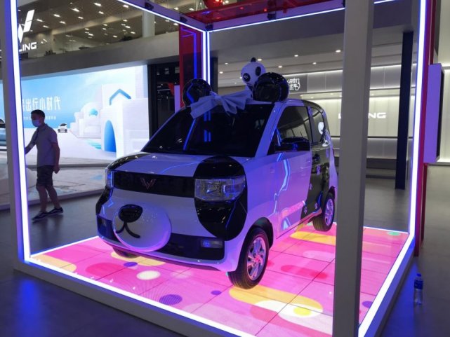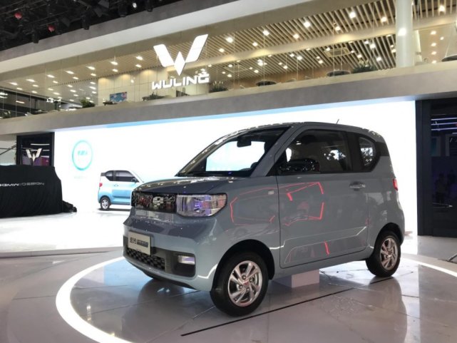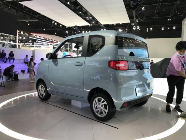 这次五菱主要展出的车型是宏光MINI EV (配置|询价)车型,说句公道话,这车看起来实在是有点儿像老年代步车,但这也无妨,因为这车定位就是一个代步车型,整备质量只有705kg,驱动电机也仅有20千瓦,驱动车身还是十分轻松的。