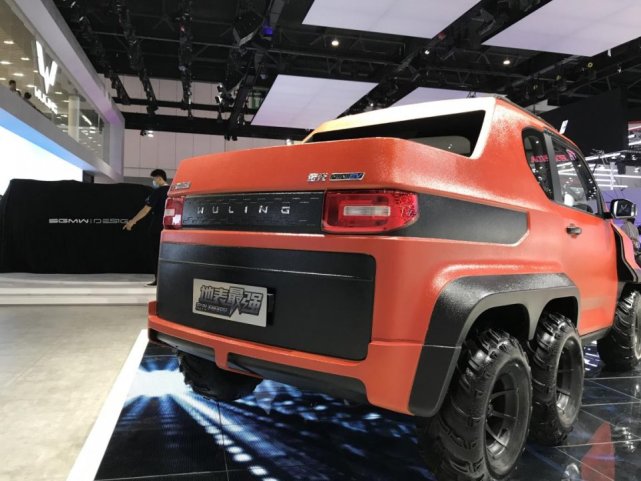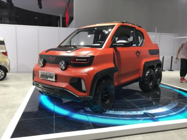 这次还来了一台特别能玩儿的车型,五菱宏光MINI EV特别版,采用了皮卡的结构,六轮设计,造型相当给力!