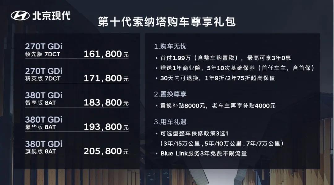 昨日(7月22日),北京现代第十代索纳塔上市发布会以全场景、创新性的直播形式正式上市,共推出两款动力共5款配置,指导售价区间为16.18-20.58万元,并提供了三大购车尊享礼包。