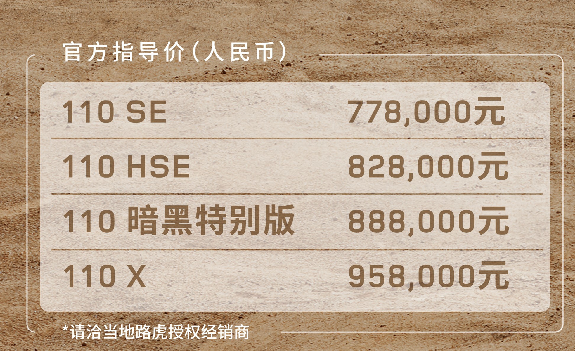 7月24日,2020年成都车展正式开幕。在此次车展上,全新路虎卫士 (配置|询价)正式上市,新车售价为77.8万-95.8万元。全新路虎卫士基于全新极限全地形平台D7x架构打造,并有卫士90(三门短轴距版)以及卫士110(五门长轴距版)两种尺寸车型。本次率先上市的车型为五门长轴距版本的110车型,三门短轴距版本的90车型将在未来开启预订。
