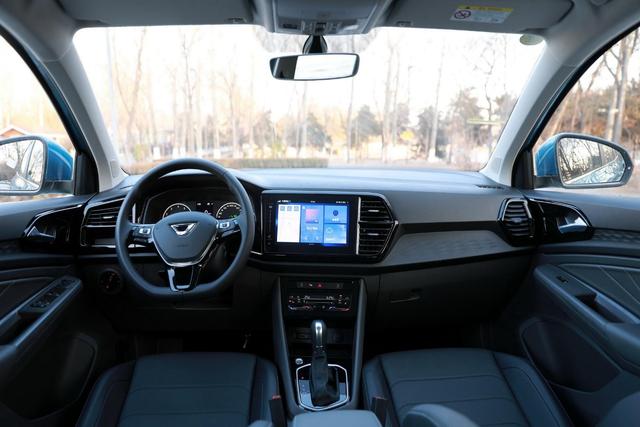 外观看上去比较新鲜,但来到内饰,大家还是能找到比较明显的大众特征,各功能区域的划分清晰明了,并且中控台还向驾驶员一侧倾斜。虽然和大众家族设计语言有所区别,但绝大多数零部件还是与大众产品相互通用的,例如空调控制区、仪表盘、方向盘、换挡杆造型等,都是熟悉的味道。