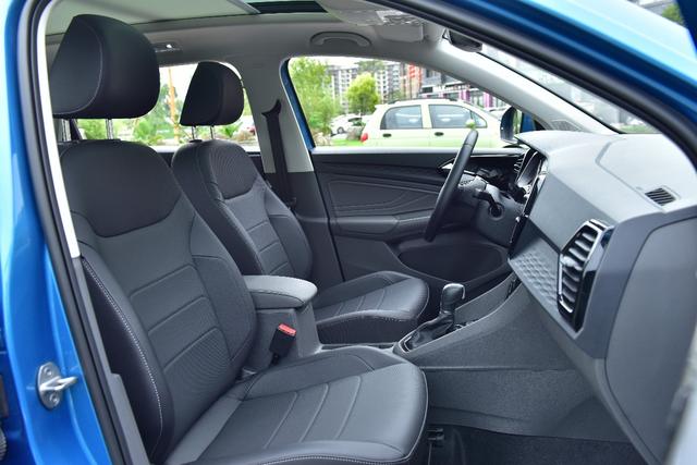 捷达VS7的座椅依旧是熟悉的大众味儿,中高配车型采用皮质座椅,主驾驶座椅支持电动调节,坐垫只支持高低调节,而俯仰角度无法调节,副驾驶座椅全部为手动调节。此外,全系车型标配可开启全景天窗,尺寸也很可观,一直延伸到了后排乘客头部,提升了车内通透性。