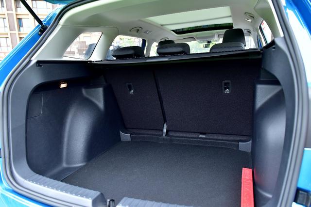 行李箱空间看上去很可观,容积为548L,内部高度充裕,放置大件物品很方便,后排座椅折叠后会有一个小的台阶,不过影响不大。
