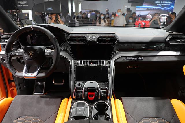 内饰方面,新车标志性六边形元素随处可见,中控配备上下两块液晶显示屏,内饰采用了全新的Grigio Keres金属灰色,中控台可以选择兰博基尼Tamburo驾驶动态,可对全车的动态系统进行控制,根据驾驶者偏好和路面状况切换驾驶动态:STRADA (道路)、SPORT(运动)和CORSA(赛道)模式,以及新增设的NEVE(雪地)模式。同时,可选装两种越野模式:TERRA(越野)和SABBIA(沙地)。