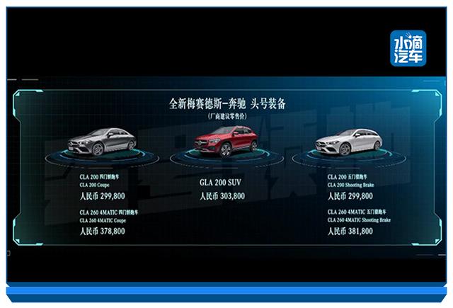 奔驰CLA作为一款紧凑级轿跑,外观个性运动,让许多年轻消费者垂涎欲滴,而相比同级别车型更高的售价让喜欢他的人望而却步。此次全新CLA及猎装版各推出两款车型,分别为200以及260 4MATIC。200车型均为29.98万元,260 4MATIC轿跑版为37.88万元,猎装版为38.18万元。全新GLA也同时上市,目前只有GLA200车型,指导价为30.38万元。