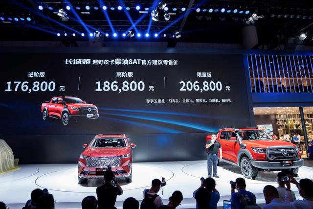 7月24日,长城炮 (配置|询价)越野皮卡柴油8AT于成都车展上市。其中,四驱进阶版17.68万元,四驱高阶版18.68万元,四驱限量版20.68万元。