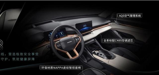 内饰部分,新车沿用了哈弗F7的整体设计,并提供了氢蓝(新能源车专属配色)和炭黑两种内饰配色方案,车内配备了三辐式方向盘、全液晶仪表和悬浮中控显示屏,车机内置全新一代MyLink+系统和Onstar安吉星系统,同时配备了自动泊车、前方碰撞预警、侧盲区报警、车道偏离预警以及博世ESP 9.3电子稳定控制等功能。