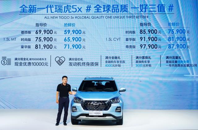 其中,刚刚上市的全新一代瑞虎5x (配置|询价)正式登陆西南市场,提供1.5L MT/CVT两款动力总成6种配置车型,价格区间跨度合理,给消费者带来丰富的购车选择。此次全新一代瑞虎5x上市,奇瑞可谓诚意满满,前10000名车主将优先畅享现金优惠10000元,抢鲜价5.99万元起。