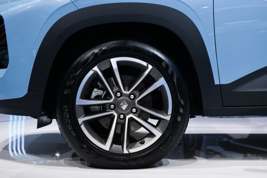 车身侧面,新车采用了时下比较流行的悬浮式车顶、双色车身以及全黑的外后视镜等设计,并且轮胎规格进一步加大,17寸双色五辐式轮毂,加上轮眉上宽厚的黑色装饰件,带来更佳的视觉享受,足够霸气。