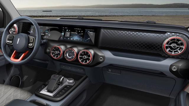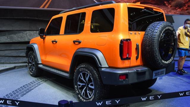 车型设计方面不多说,整车设计都朝着"硬派"发力,方正车身、复古大灯、外凸式前保险杠、大尺寸轮眉、外挂式备胎都在表达着它的定位。虽然现场未能看到内饰,但从后续官方发出的图片来看,坦克300在内饰上同样采用了硬派的设计风格,空调出风口造型和奔驰大G有些类似。