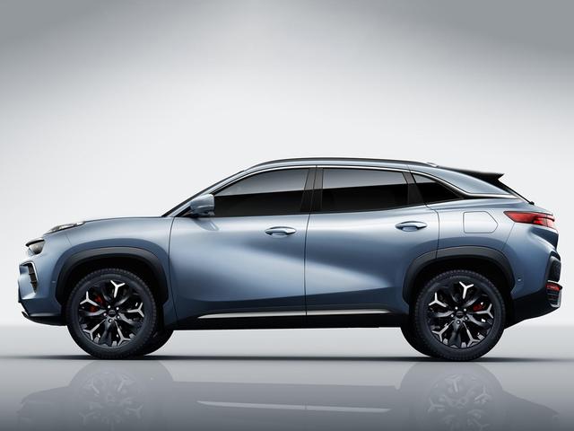 新车侧面看点同样十足,溜背式设计,B柱隐藏式设计、运动黑色轮眉、20英寸“Y”字形双色轮毂、红色卡钳等增加了新车侧面的运动感。
