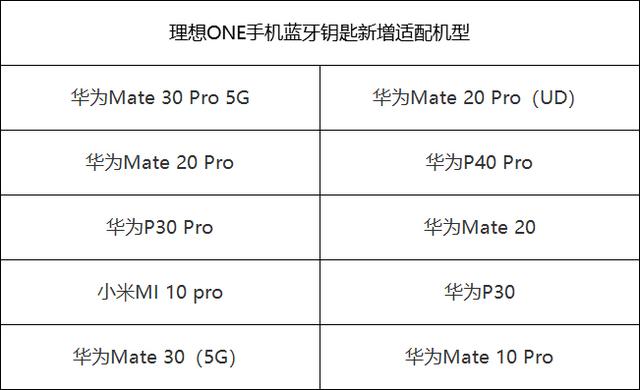 新增Android手机蓝牙钥匙中的10款机型大多是华为手机,这是理想ONE有意而为的结果,因为目前上述10款手机的用户群体最多。当然,日后理想ONE会匹配更多Android机型。