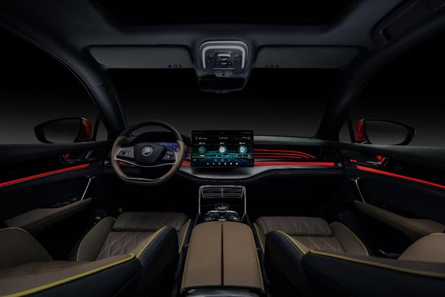 座舱以中国古典建筑为灵感,布局大气、层次对称,集格调感、恢宏感于一体。 Ultrasuede®超纤高档类麂皮面料,环抱而行,2mm精奢双色缝线,至臻质感堪比百万级豪车;龙爪之痕数字面板极具个性,加之31色交互式智能座舱氛围灯,科技感十足,堪称整车点睛之笔;龙鳞纹豪华真皮座椅,根据人体工学全新开发,更贴合亚洲人的身体曲线,加上高难度数码冲孔压线工艺,舒适性、豪华感双一流。