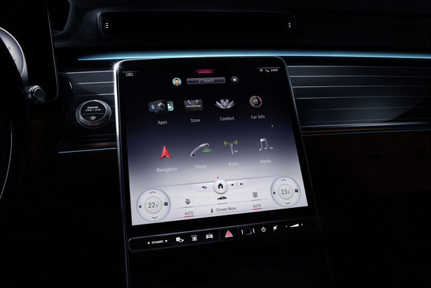 内饰方面,新车内饰变化巨大,除了摈弃当前奔驰标志性的双联大屏之外,也开创性的用上了中控斜置大屏设计,中控区搭载了大尺寸竖置触摸屏,整体科技感更为充足。新一代奔驰S级搭载的全新MBUX信息娱乐系统,能够满足多人同时操作,从而实现前后排乘客的不同使用需求。同时,我们还看到新一代奔驰S级还搭载了全新的多功能方向盘,方向盘前面则为12.3英寸全液晶仪表,支持多种主题模式的切换,显示信息量非常丰富。此外,奔驰新一代S级还搭载了集成AR现实增强功能的HUD抬头显示功能,这项功能除了能提供常见的导航信息和行驶信息外,还增加了动态箭头指示功能,能结合路况实现更为直观和安全的导航信息。在安全性方面,奔驰将首次为后排乘客提供正面安全气囊,可在车辆发生正面碰撞时保护后排乘客。
