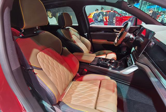 内饰方面,新车内饰采用环抱式座舱,布局大气、层次感十足。内饰采用棕色和黑色的双拼内饰,看起来更加高级。双幅式方向盘搭配悬浮式中控屏,车内科技感氛围十足。用料上,车内采用了Ultrasuede®超纤高档类麂皮面料,凸显质感。同时,座椅工艺同样不简单,采用了数码冲孔压线工艺、2mm缝线、金色包边,打造出类似龙鳞纹的样式,舒适性大有提升。