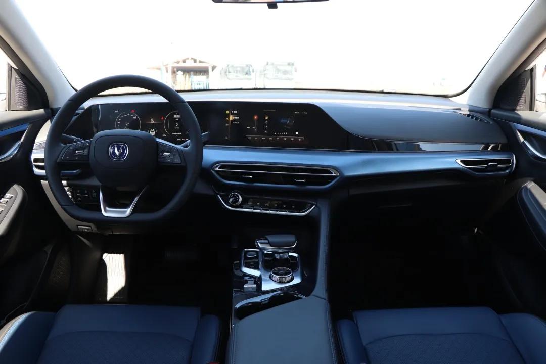 在逸动PLUS的内饰风格之上,E-Life加入了一些标志性的细节元素,例如全新样式的方向盘、冰蓝色中控面板,其中冰蓝色面板也象征着其新能源身份。