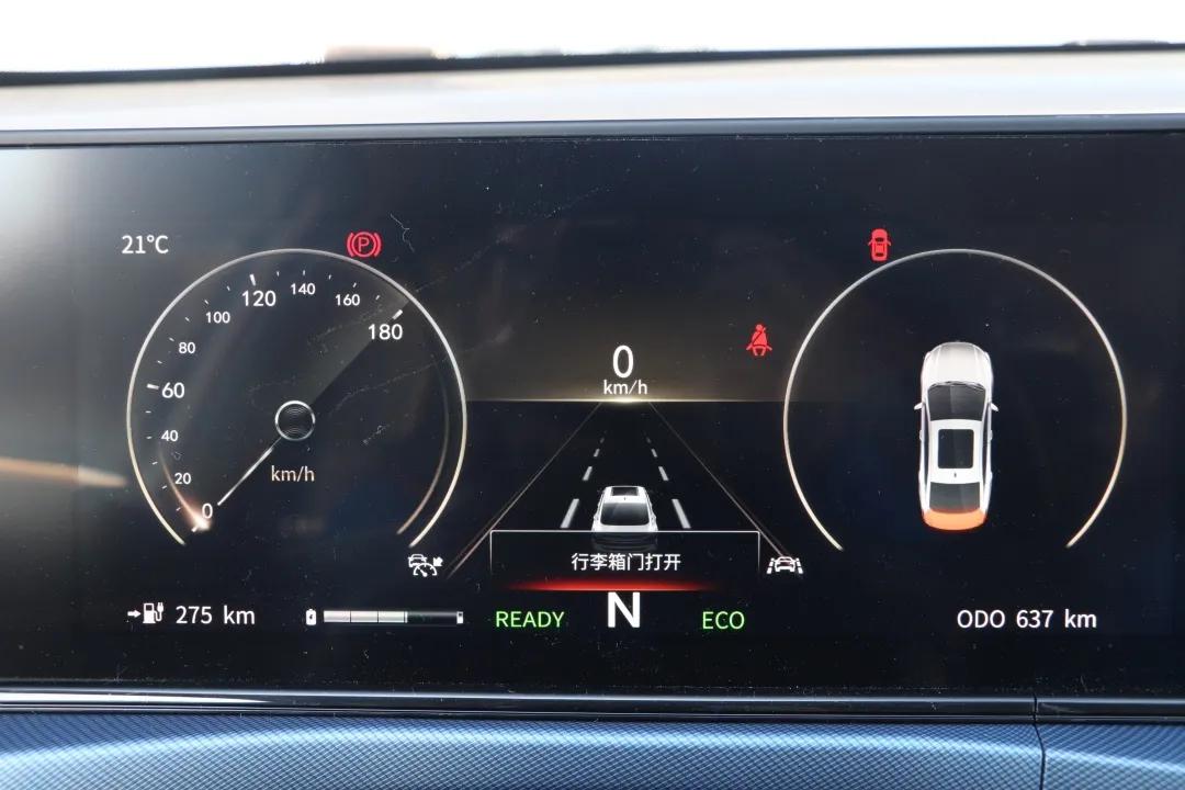 ECO模式下,动能回收力度会自动切换至“B+”,也就是较强的回收力度,松开油门踏板就能感受到拉扯感,而在NORMAL和SPORT模式下,动能回收都默认为“B-”低力度模式,松开油门无明显拉扯,与传统燃油车并无差异。