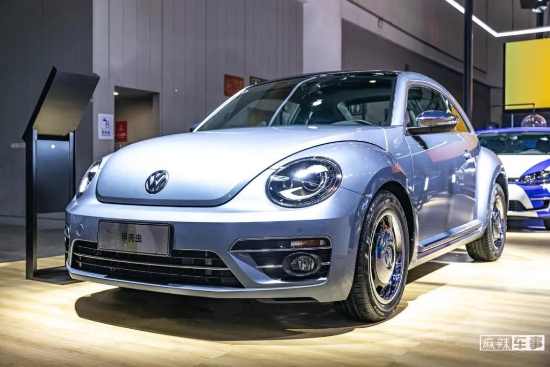 当麻辣车事从左侧横穿进入大众进口展台,一辆“石墨蓝”配色的甲壳虫旁围了几个20岁出头的小姐姐,左瞧瞧右看看爱不释手,一旁的销售也饶有兴致的介绍着。
