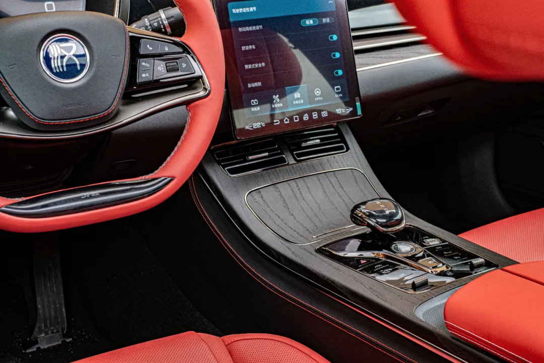 比亚迪汉的内饰造型同样是在原有的家族设计基础上做了创新,因为定位为比亚迪的旗舰车型,所以豪华氛围的营造也就成为了重头戏。大量的皮质包裹随处可见,这对于汉来说不能算优点,因为既然要做豪华座驾这点必不可少,而纯原木的装饰的点缀却恰如其分,据厂家介绍这辆车上面的木头会选用树龄较大切割方式比较特殊,反正大概的意思就是他们用心了,所以手感确实不错,是提升内饰装潢档次的重要细节。